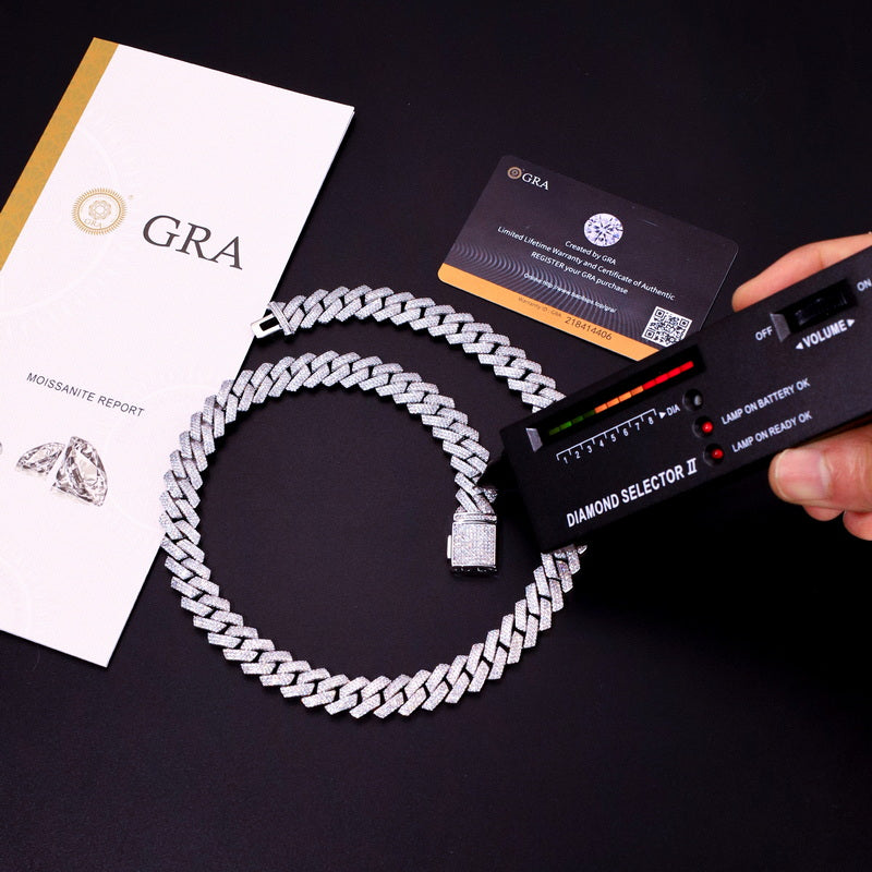 13mm/14mm/16mm Sterling Silver Hip Hop Iced Moissanite Cuban Link Chain
