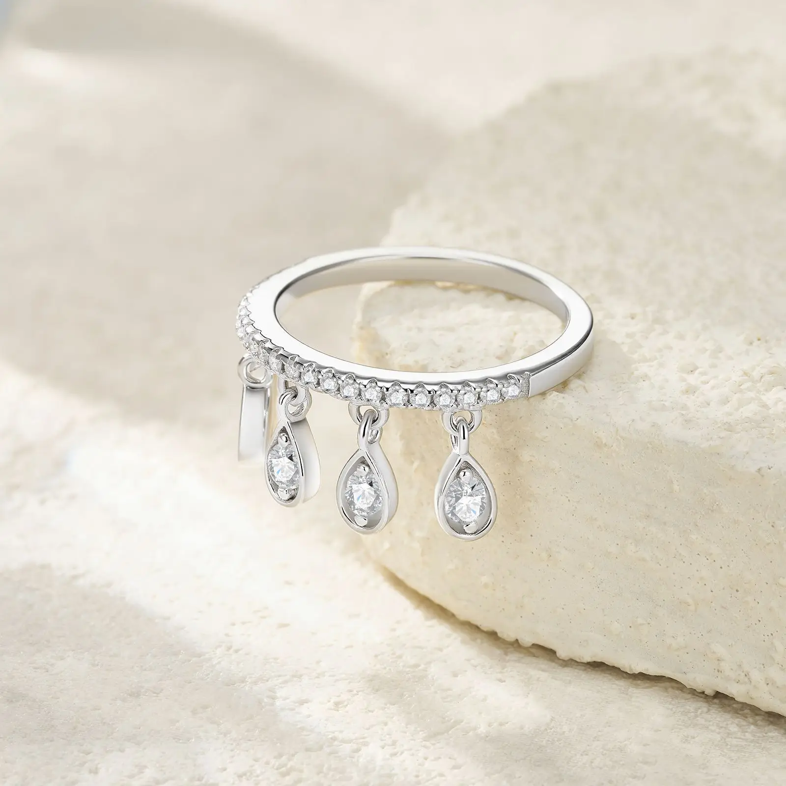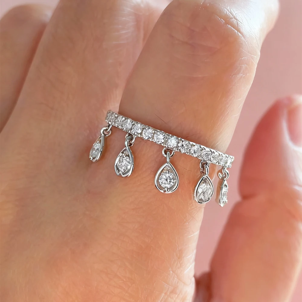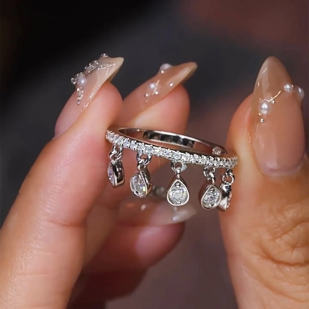 Tassel Ring 925 Sterling Silver WaterDrop Dangle Diamond Wedding Band