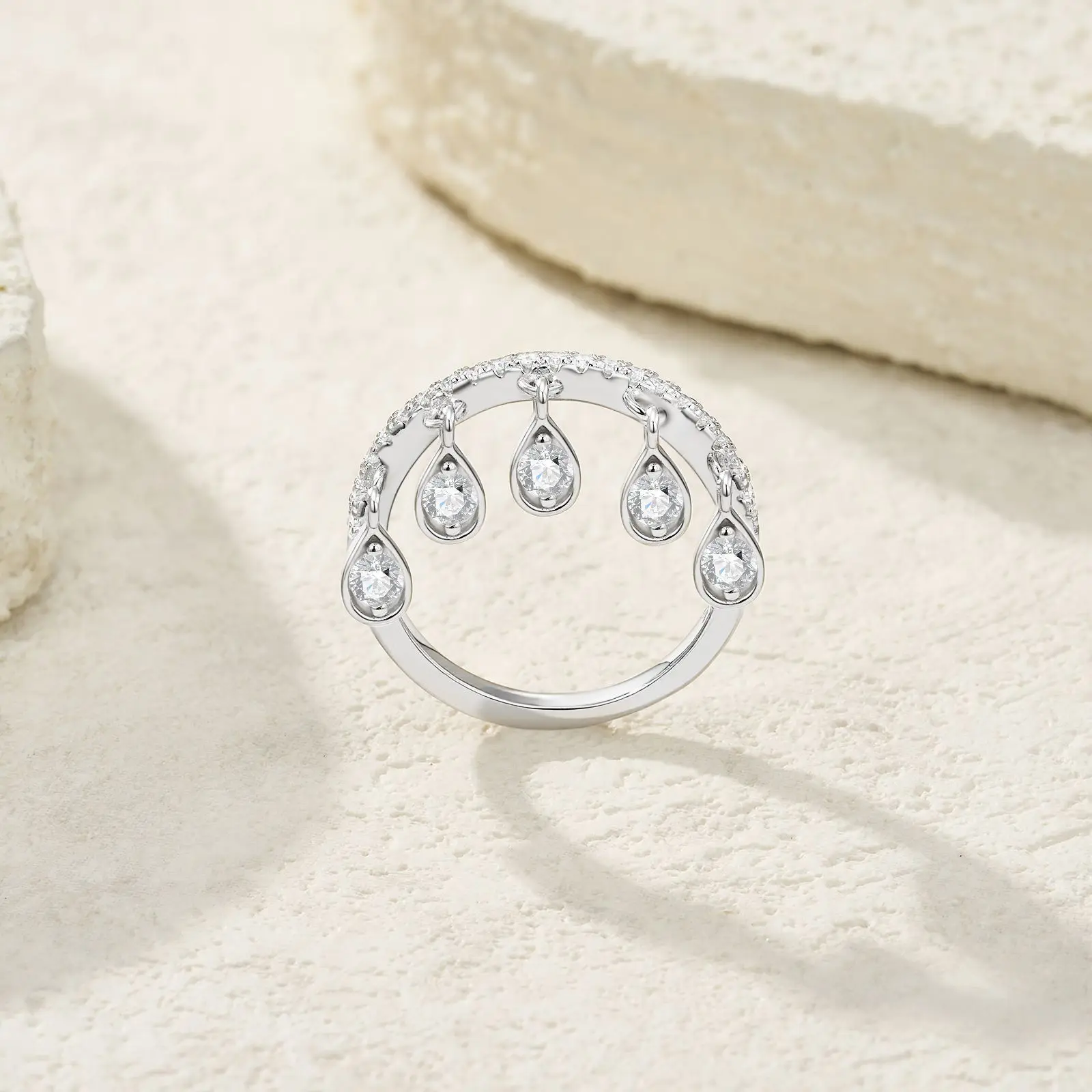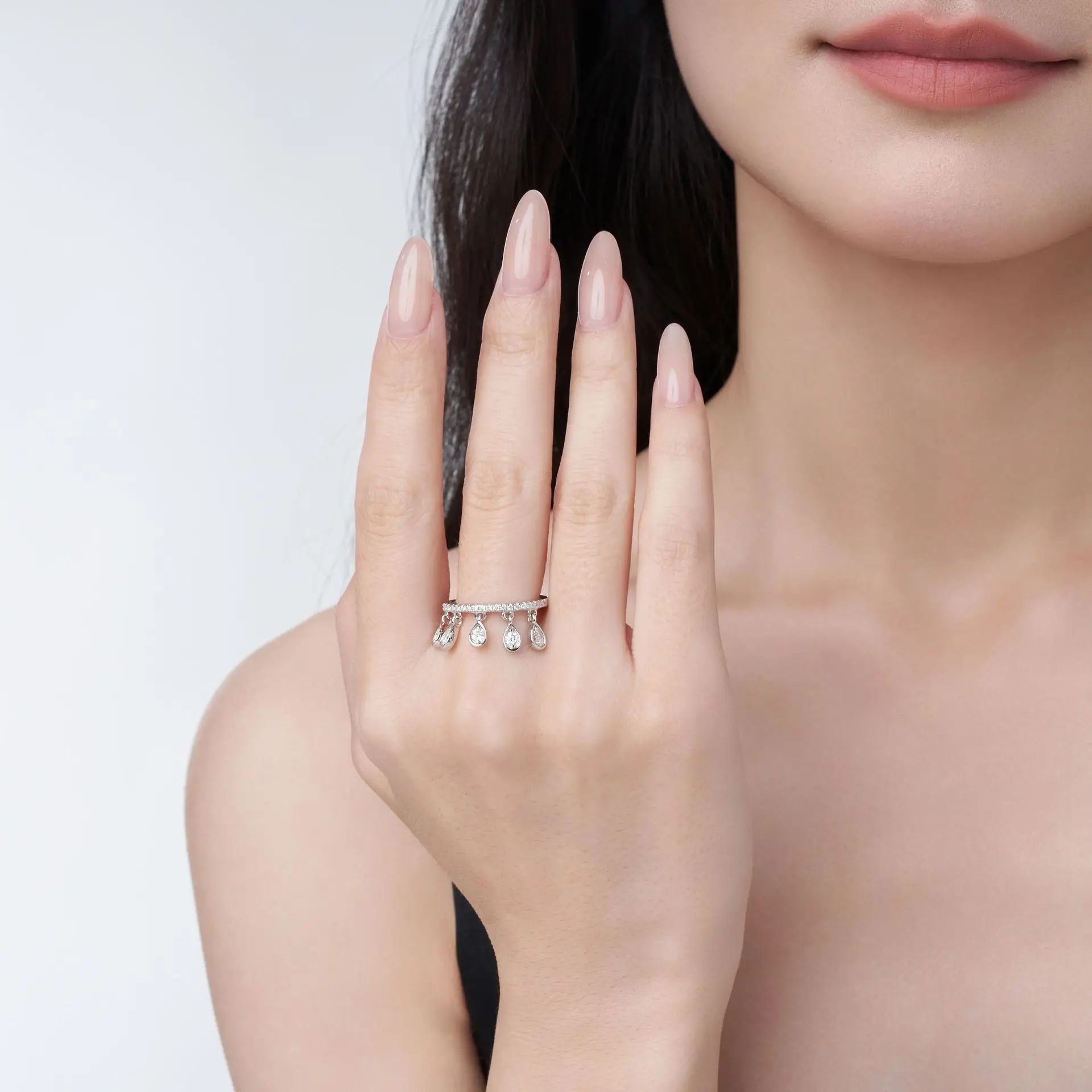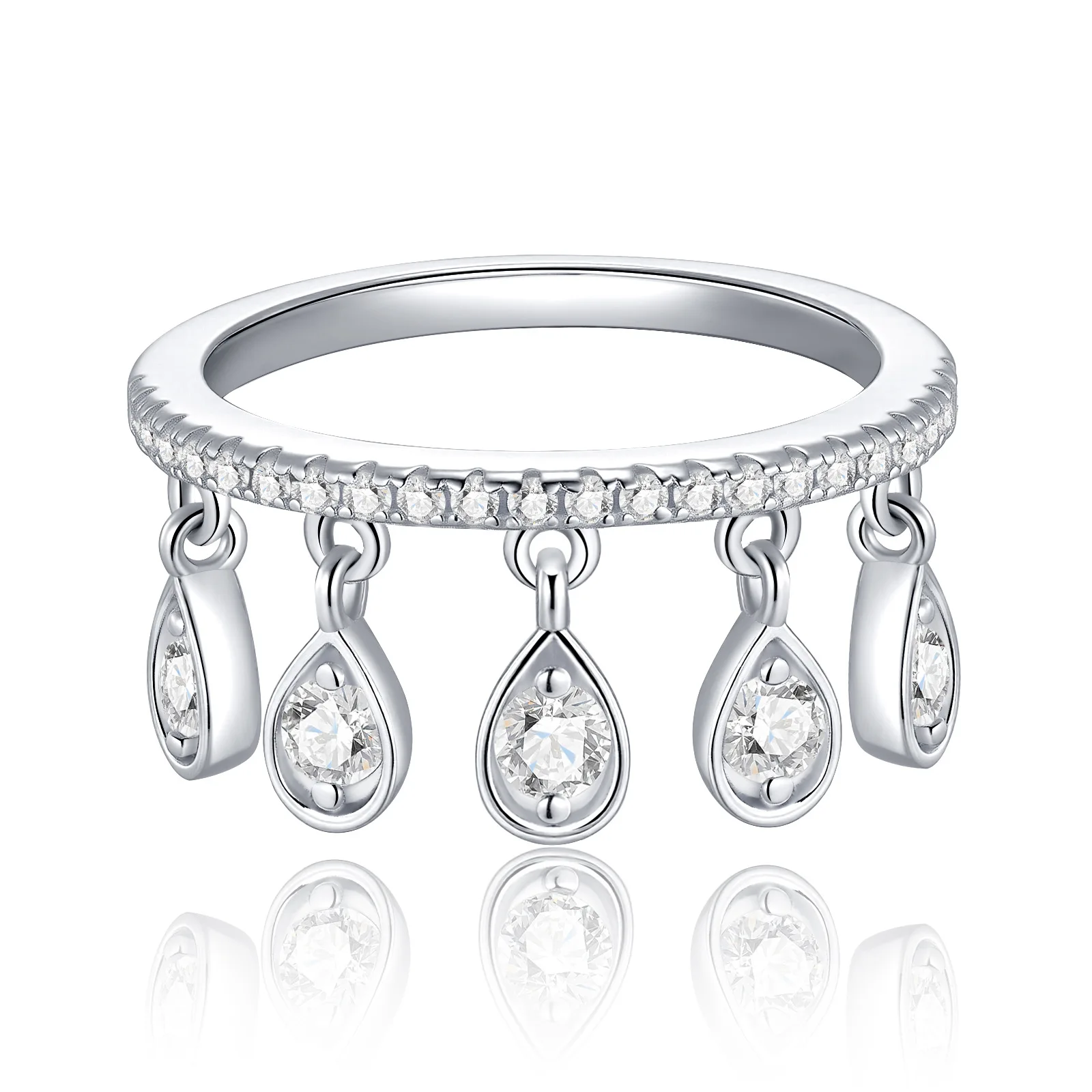 Tassel Ring 925 Sterling Silver WaterDrop Dangle Diamond Wedding Band