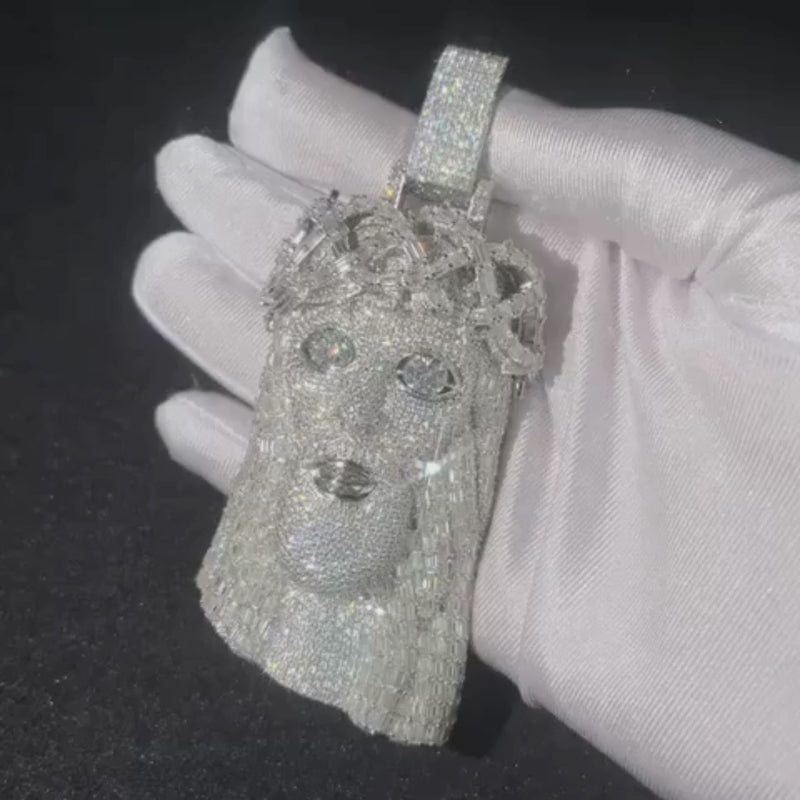 Custom Pendant 4" Jesus Head Solid Sterling Silver Moissanite Diamonds
