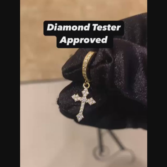 Gold Plated Cross Iced Out Sterling Silver Moissanite Diamond Earrings