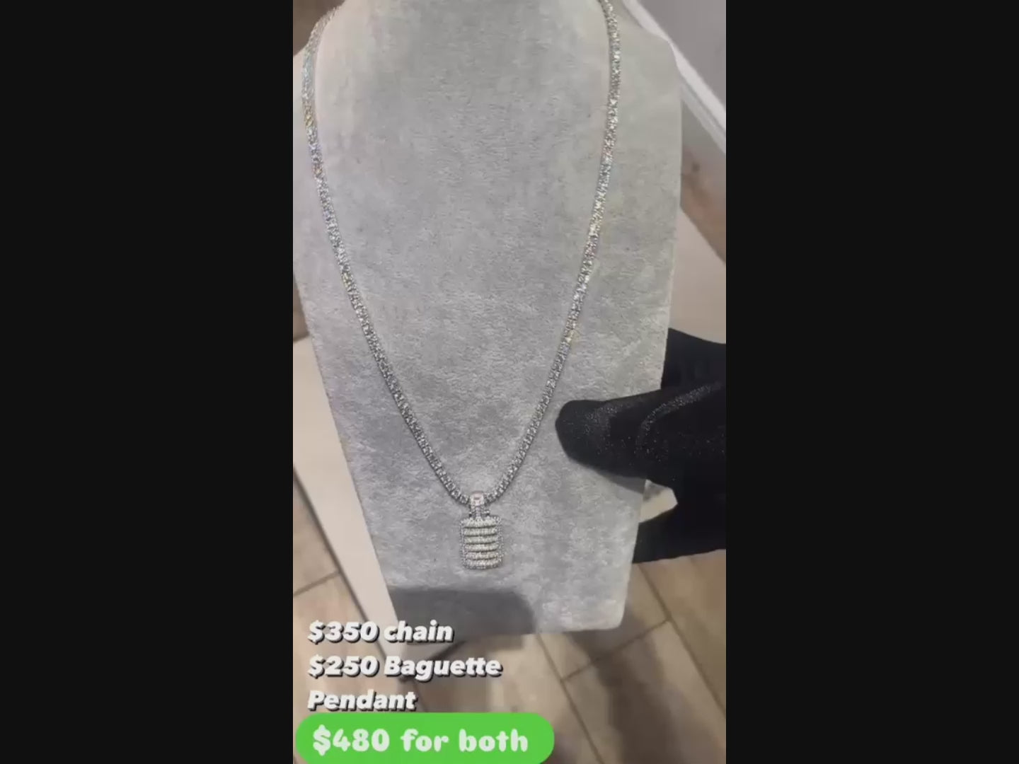 The baguette-cut Moissanite pendant delivers a clean, sharp sparkle, while the matching chain completes the look with premium shine. Each stone is hand-set and guaranteed to pass the diamond tester, giving you real diamond-level fire without the luxury price tag.